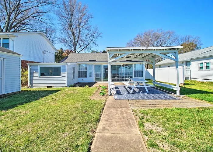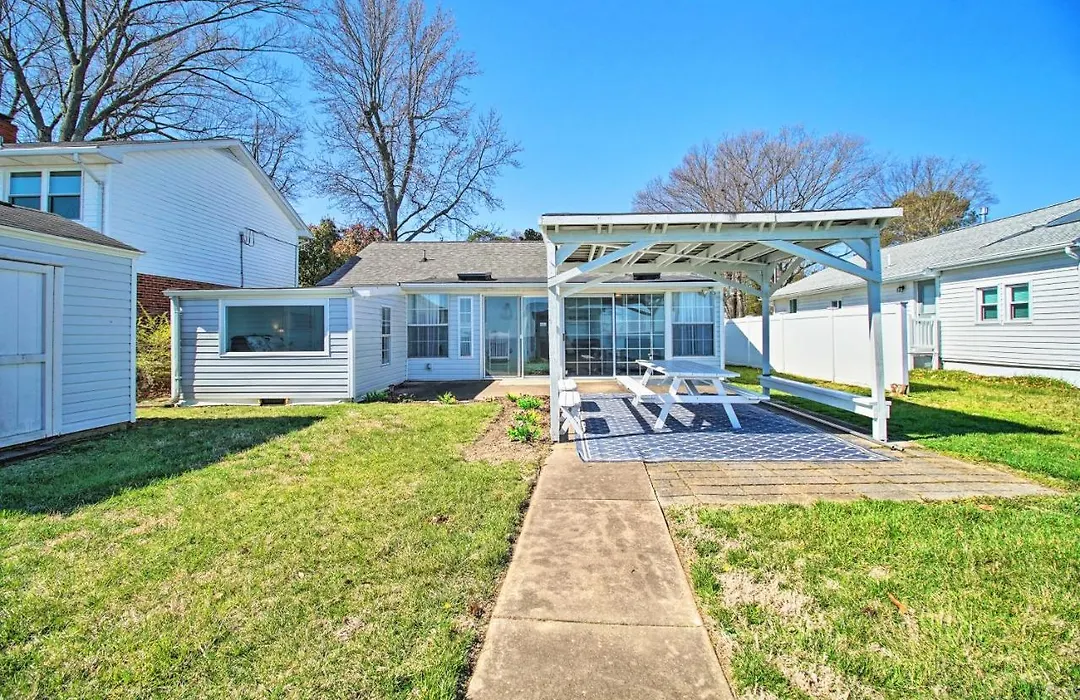 Refreshing Colonial Beach Vacation Rental! villa ligt binnen 3 km van The Museum at Colonial Beach en nodigt gasten uit om te ontspannen op een zonneterras.
